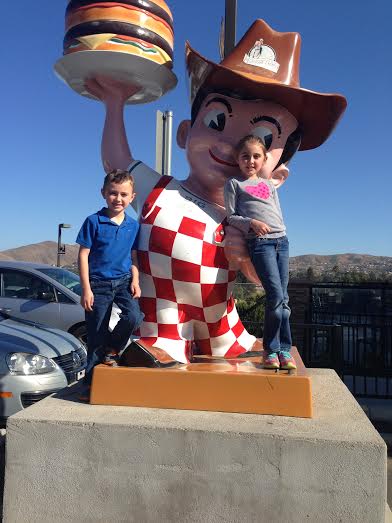 Today we had lunch at the famous Bob's Big Boy. Phil and I had remembered coming here many times as a kid and for some reason, this place always seemed to be one of my favorite restaurants to eat at. Not sure if it was the all you can eat Sunday brunch or the declicious, little mandarin oranges I could never get enough of..lol! All in all, the food ended up being okay, not as good as I remembered, but they do offer a nice selection of desserts. Of course we couldn't leave without getting a picture of Avery and Callum standing next to the famous Big Boy statue. :)