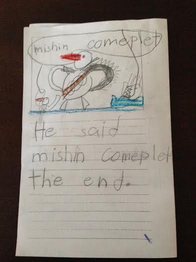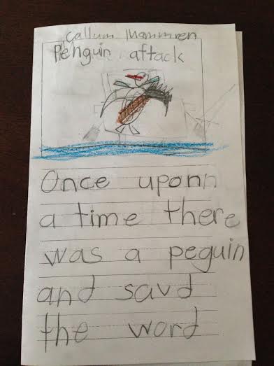 I love reading Callum's short stories that he writes in school. I'm not sure his teacher saw this one because there was no grade on it, but I thought it was witty and such the typical boys' story. He's got quite an imagination!