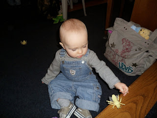 He is now approaching toddlerhood, which is crazy, and has developed the sweetest little personality ever. He's constantly on the move and is always looking for new obstacles and is beginning to be fearless at everything he does. Not so sure that's a good thing. He's starting to imitate what people are saying and has a vocabulary of about 6-7 words now. He enjoys watching cartoons with his big sister and has really taken a liking to mashed potatoes and gravy. Yummy, his favorite!