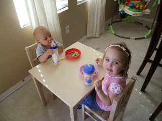 Philip and I ventured to Ikea yesterday in hopes to find a toy chest for the kids. Well, we didn't find the toy chest we were looking for, but we found this cute little table for two instead. It is just perfect for them and I thought they looked so cute sitting down having their snacks this morning. Awww....they look so grown up! Now mommy and daddy need to find themselves a nice new grown up table.