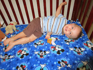 Callum is transitioning nicely into his "big boy" bed. We decided he was ready when he started to climb out of crib during naptime and quietly tip toe around the house. He thought it was the funniest thing ever and seemed very proud of himself that he had mastered it. Honestly, I'm thankful, and very surprised that he wasn't climbing out of his crib at a younger age. He's always proved to be such a little dare devil.