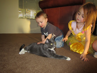 Meet Minnie, the newest addition to our family. We adopted Minnie from the Escondido animal shelter yesterday and we've been having so much fun with this lovable little girl. She is a 3 yr old kitty and she is very sweet and affectionate. She's been roaming around exploring the house the last couple of days and is becoming very acqainted with everything, including us. She seems to have warmed up to the kids very nicely and they absolutely adore her. She seems to have already found a favorite spot, inside of Avery's closet. We are very excited to have found our little Minnie.