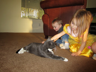 Meet Minnie, the newest addition to our family. We adopted Minnie from the Escondido animal shelter yesterday and we've been having so much fun with this lovable little girl. She is a 3 yr old kitty and she is very sweet and affectionate. She's been roaming around exploring the house the last couple of days and is becoming very acqainted with everything, including us. She seems to have warmed up to the kids very nicely and they absolutely adore her. She seems to have already found a favorite spot, inside of Avery's closet. We are very excited to have found our little Minnie.