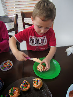 It's cupcake making time!!! Earlier today I had made some pumpkin cupcakes in my easy-to-use and very convenient "BabyCakes" cupcake maker, I'm not only a spokesperson, but a believer. When Avery got home from school, I let the kids go to town and decorate their own Halloween cupcakes. They decorated all 28 cupcakes (Callum had fun pre-tasting before the frosting went on, leaving us short of a couple, lol) Of course there was lots of licking and tasting in the process, to make sure each and every cupcake was simply delicious. All said and done, we had 28 beautifully scrumptious yummy cupcakes and a very sugar happy Avery and Callum.