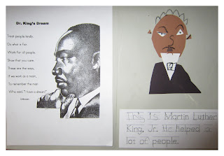 I know Martin Luther King Jr. day has passed and I'm about two weeks late posting this, but I had to post it anyway. This was Avery's project that she brought home from school and I have to say, I was amazed, or impressed to say the least. I think it's great the things they are teaching the kids at such an early age. Did I mention how much I loved her school?! :)