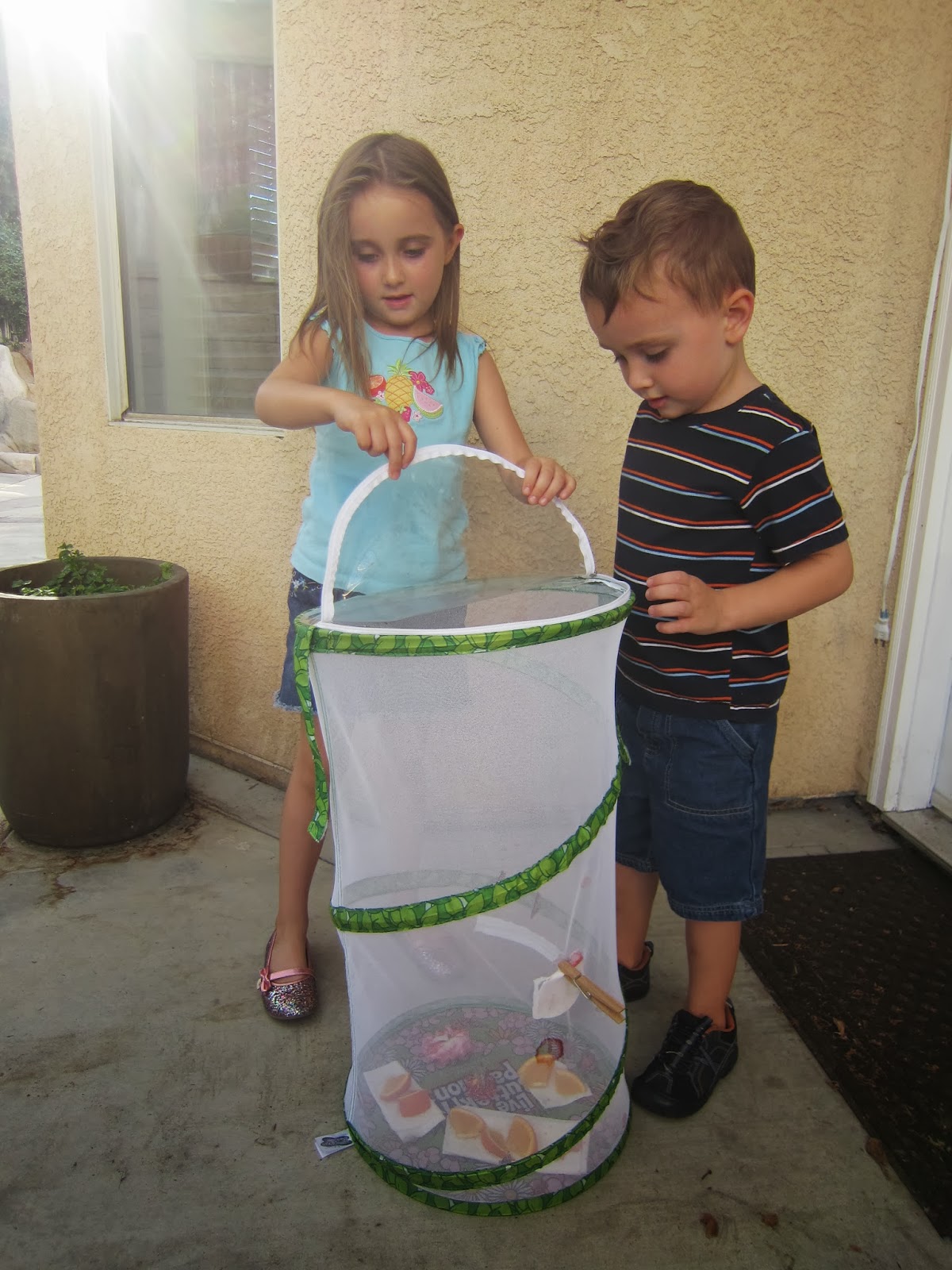 Our little critters have finally turned into beautiful butterflies and were set free last week. Avery and Callum helped daddy bring the butterflies to the surface and we watched them fly away. We had so much fun making sure to name each and everyone and watching them grow everyday. They were our little pets for a short amount of time and we enjoyed everyday they were here with us. Avery and Callum have now observed first hand the transformation of the caterpillar to the butterfly from beginning to end.