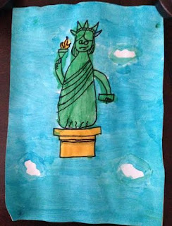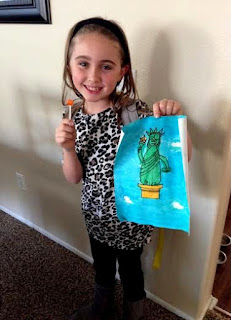 Today was Avery's first day of the Art Smarts program. The students learn many different types of art and its offered after school, which is the best part! I tried to sign up my little guy too, but he's not ready just yet. I'm hoping once he sees all the cool art his big sister is doing, he'll want to do it. Avery had done a beautiful painting of the Statue of Liberty for her first project!