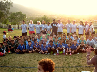 Here are the various soccer teams, which are based on age and some of their coaches. Callum is towards the middle in the last row, in the bright green :)