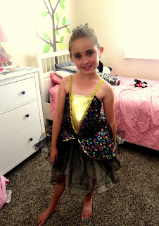 Recital costumes are in...yay!!! This seasons' costume is filled with lots of glitter and shiny rainbow sequince. Avery is getting very excited for her June recital and has been working very hard with her class every week. She came out of class very happy last week because Miss Lyndsay had given her and a couple of other girls some bigger parts in the dance. She's very much looking forward to June's perfomance!! Here is a sneak preview of this years recital costume. :)
