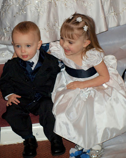 Avery and Callum had so much fun being in their Aunt Chelsea's wedding yesterday. Luckily both the kids walked down the isle together on queue and everything went off without a hitch. They looked so sweet in their wedding attire. It was the first time I've ever seen my little guy in a suit and tie. They seemed to love dancing at the reception and danced the evening away. The wedding was beautiful and they were so happy to be part of such a special day.