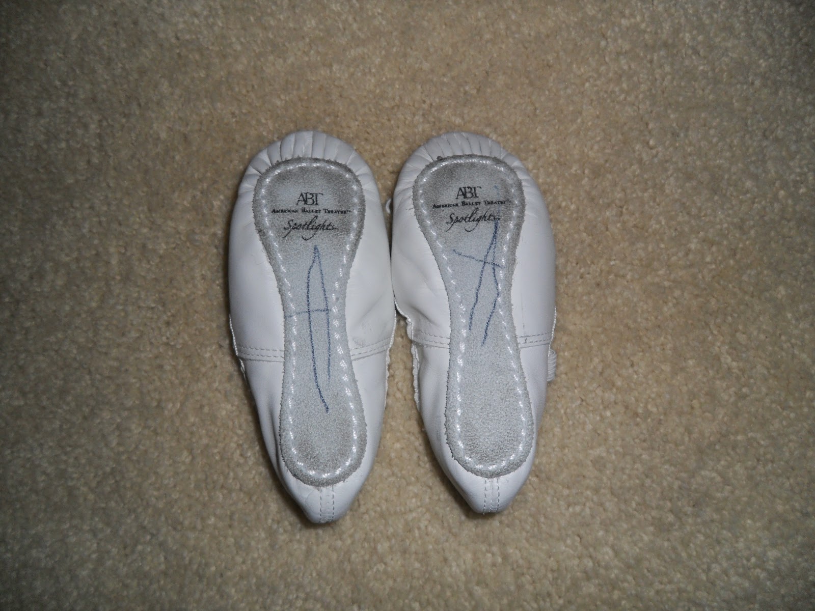 I bought Avery a new pair of ballet shoes today before she starts her class next week. She's been wearing them all day, which is good, because she needs to break them in. I hadn't even noticed, until Philip brought it to my attention, but Avery had drawn two A's on the bottom of her shoes. I've been completely clueless all day. To be honest, I think I was more impressed than anything. Not to mention, they are pretty good looking A's!