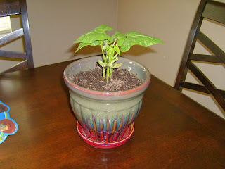 Avery came home from school with a beautiful green plant yesterday. I am not sure, but I think her class had planted these the beginning of the school year. I decided to take a trip over to Walmart this morning and found a nice little pot to transfer it to. I am hoping with a little love and just the right amount of water, Avery will be able to continue to watch her "lovely" plant grow.
