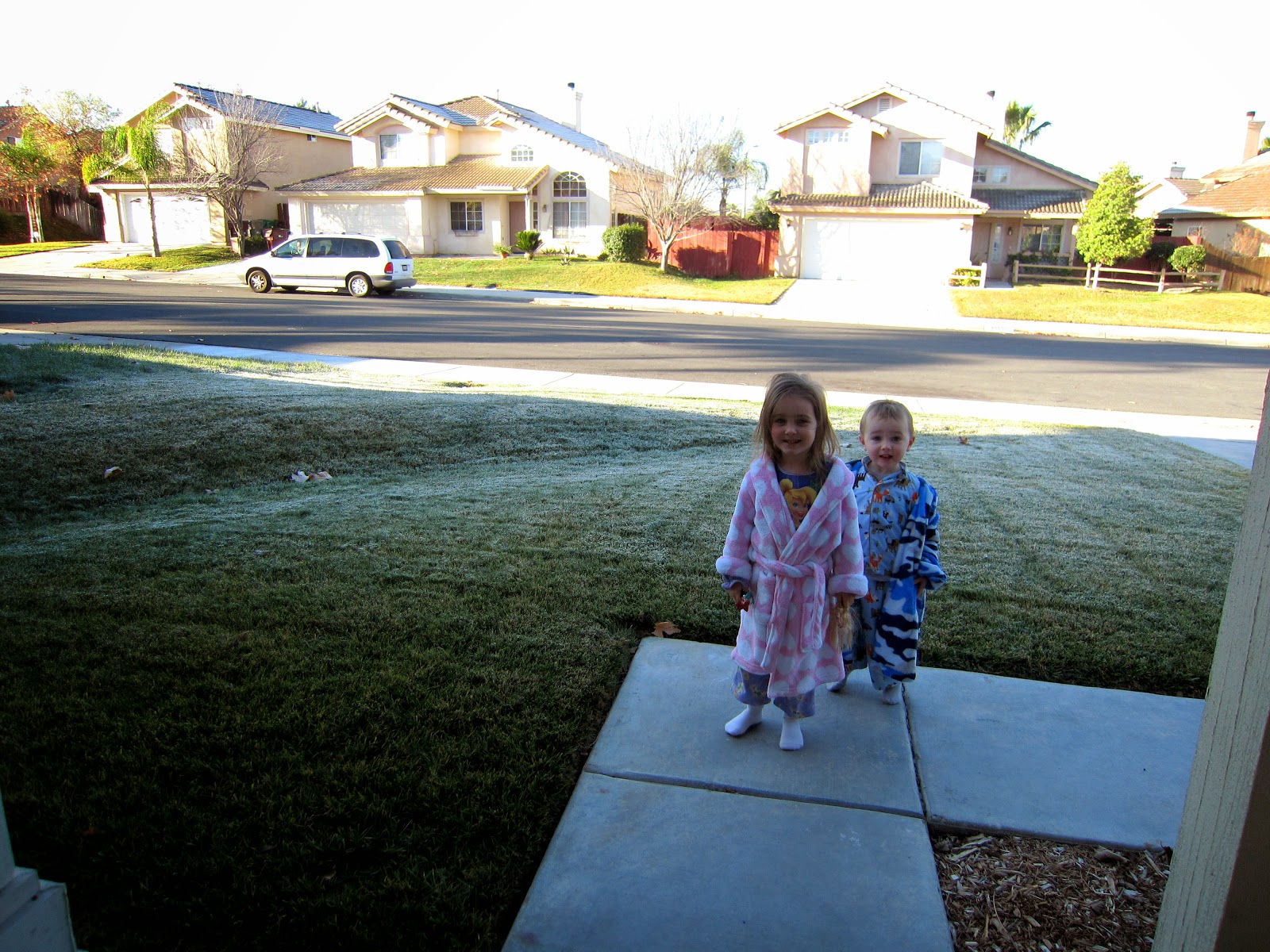 They thought it was pretty neat to see ice all over the front lawn!