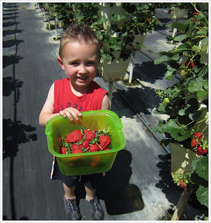 Avery and Callum had fun hand picking their own strawberries at the Temecula Strawberry Farm today. We always enjoyed visiting the farm when we lived in Murrieta, and thought it would be nice to come back and stock up on some big red juicy strawberries. Mmmmmm.....