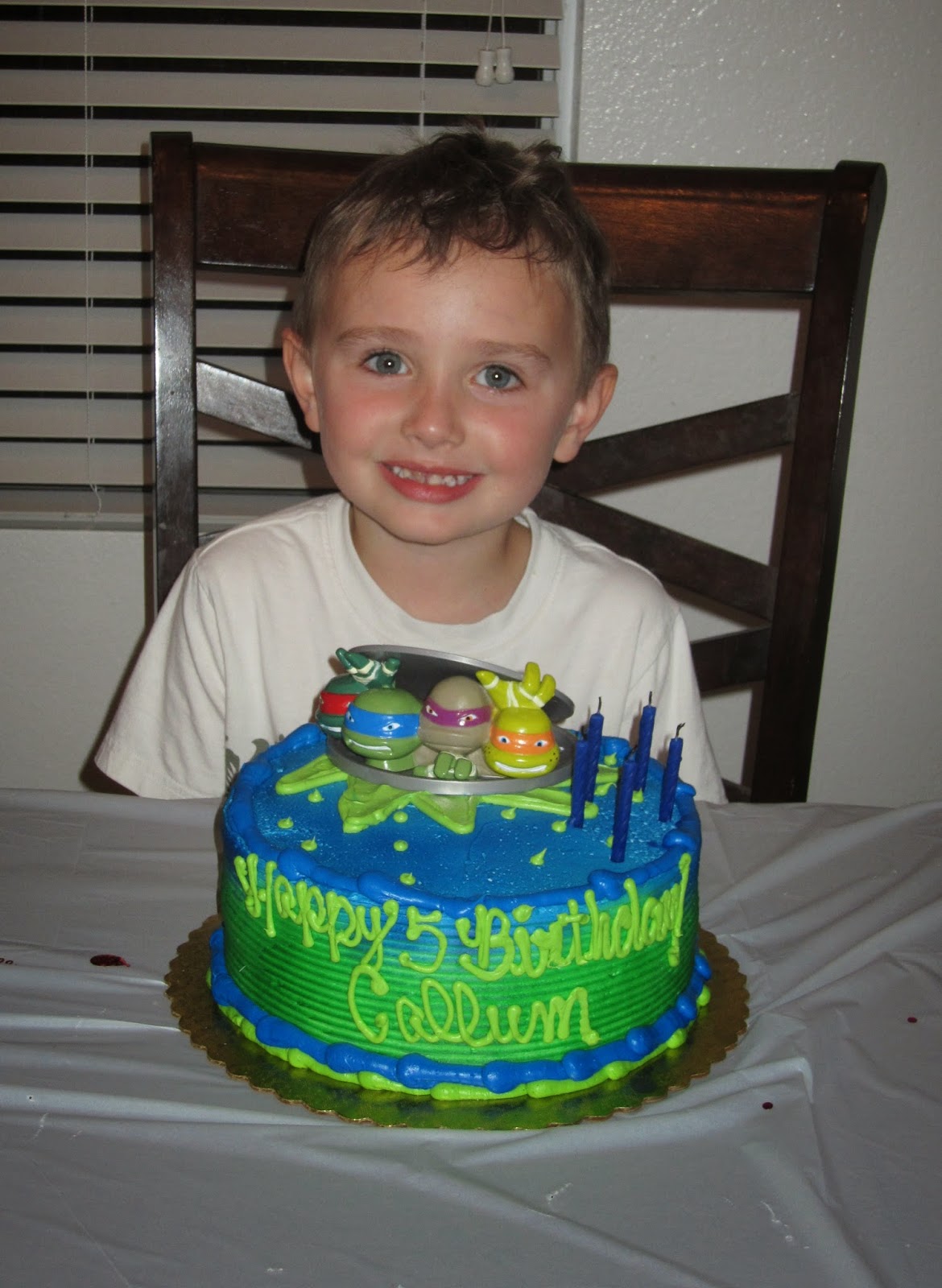Callum had a great birthday! A fun day at school with his buds and a great Birthday dinner with family, topped off with a Ninja Turtle cake! Oh....did I mention how much he loves Ninja Turtles?? Only theee coolest turtles ever! He got quite a few ninja turtle toys for his bday so he is one ecstatic boy!