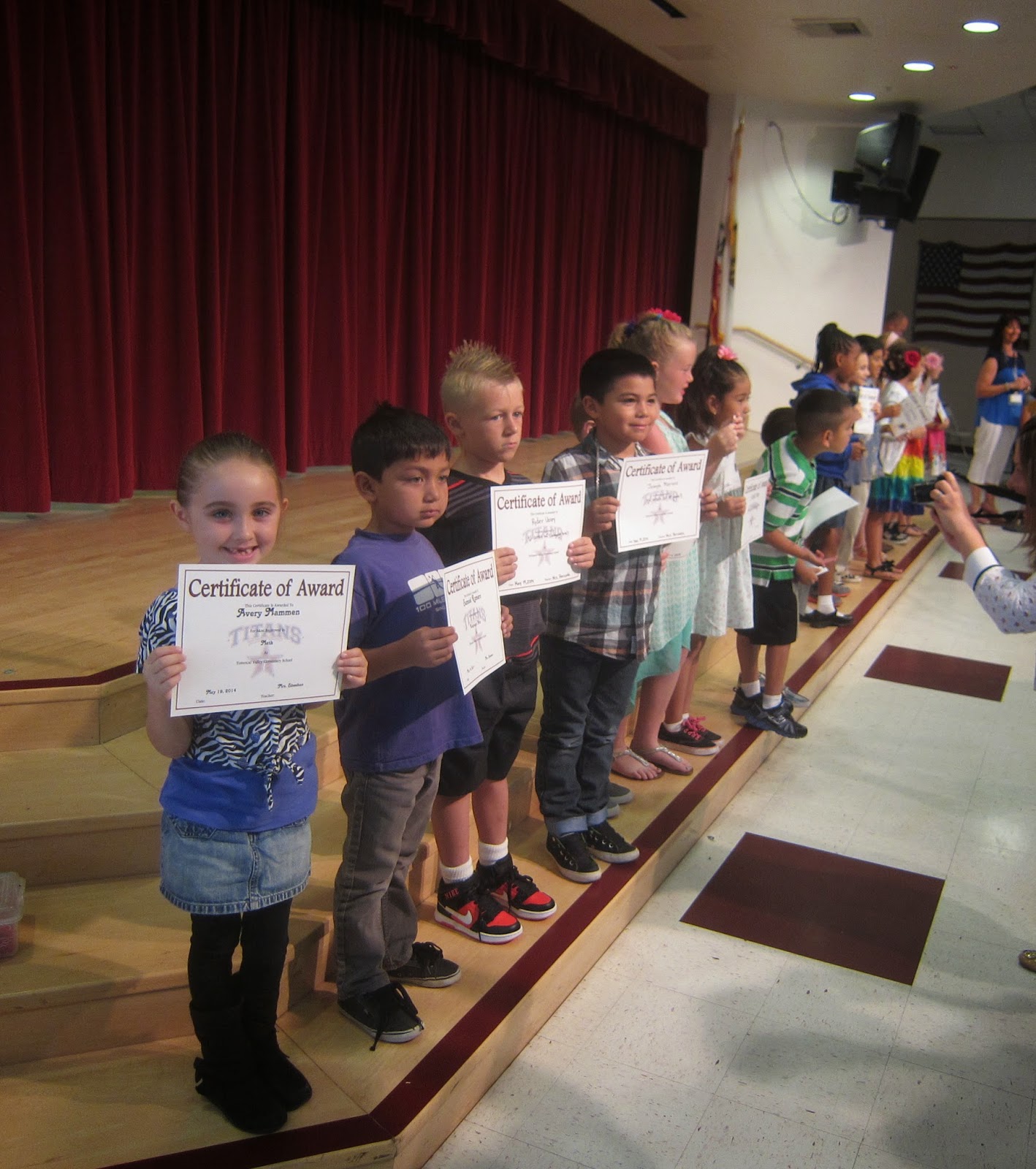 Today was Avery's Award Assembly at Temescal. Despite almost two hours of going through first and second grade awards....ugghhhhh, we were very proud of her for her accomplishments. She was awarded a certificate for most improved in Math (yay!!!) and a Titan's Ten Reading Award. All of the kids did great, lots of proud moms and dads today!