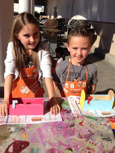 Avery and Cal always look forward to Project day at Home Depot. Today's project was constructing a wooden Valentine's mailbox and personalizing it with their own paint colors. They're very happy to have earned another project pin for their Workshop Aprons today. :)